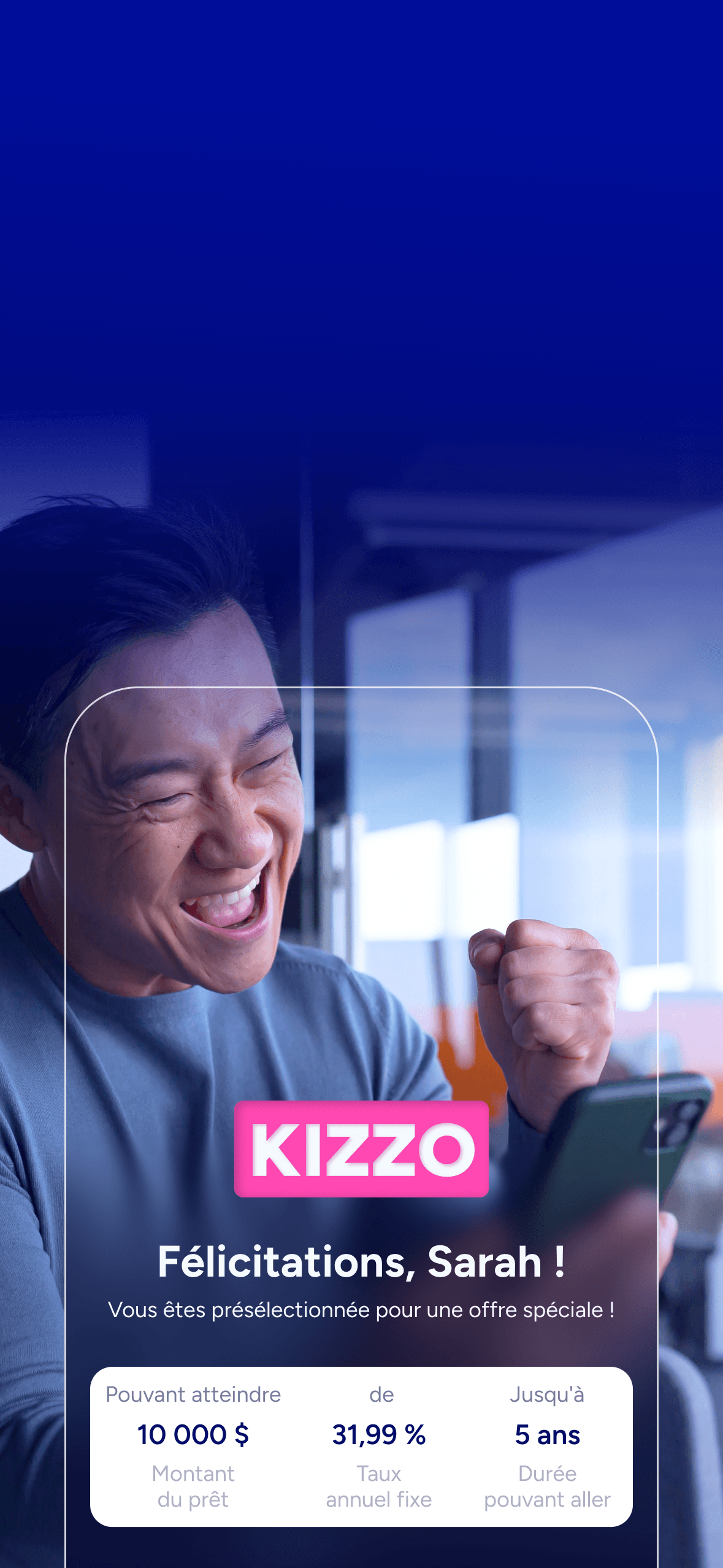 Allez à la vitesse KIZZO. Taux confirmé en secondes. Demande complétée en minutes. Financement dès 1 jour ouvrable.